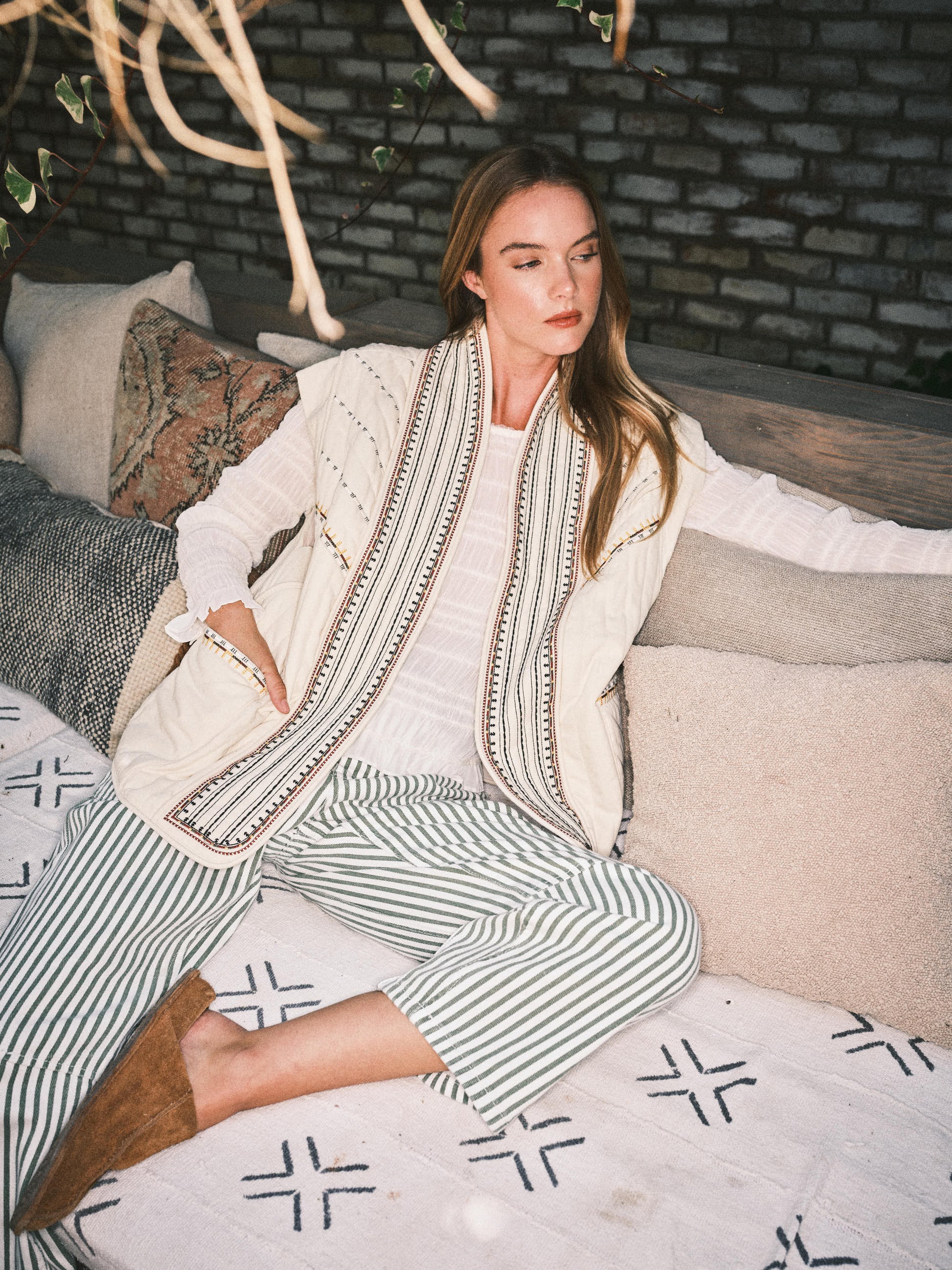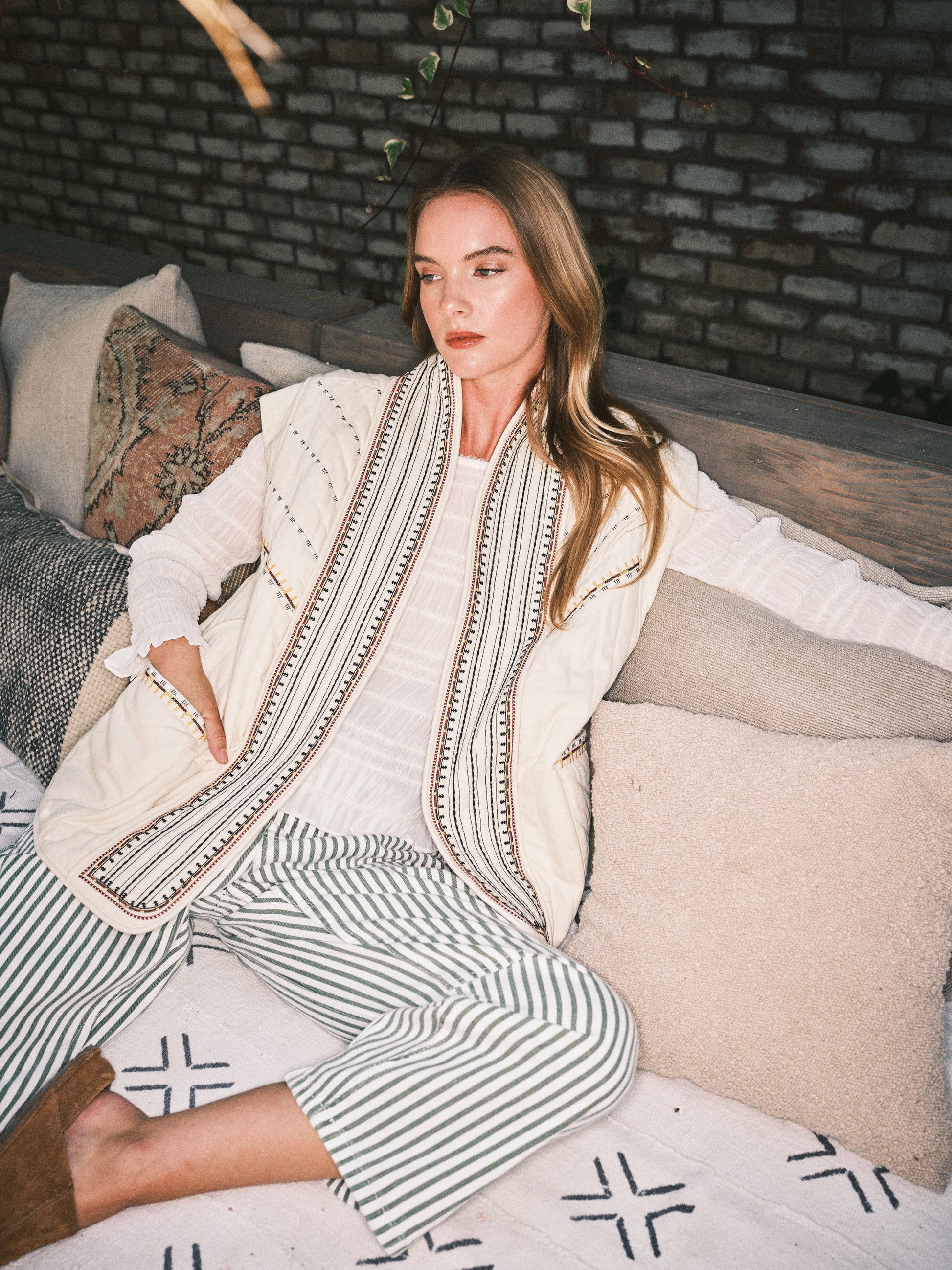 Make a statement with the Leah Vest, where oversized comfort meets artistic flair. This lightly padded quilted piece features striking embroidery detailing that transforms it from basic layering essential to a true wardrobe focal point. The exaggerated oversized silhouette delivers that coveted relaxed-modern aesthetic while the quilted construction provides gentle warmth for unpredictable seasons. Whether you choose all-over embroidery or strategic placement, this vest proves that staying cozy doesn't mean sacrificing style. Layer it over everything for an effortlessly elevated look.