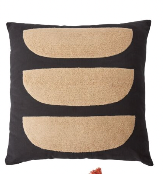Get ready for a pop of color and a playful mix of patterns with the Aldrich Pillow. Made from a combination of black slub cotton and shaggy tan embroidery, this pillow is a must-have for adding a touch of fun to your interior design. With geometric designs inspired by the phases of the moon and a cozy pillow insert, this modern statement piece will bring a warm and earthy vibe to your home decor.