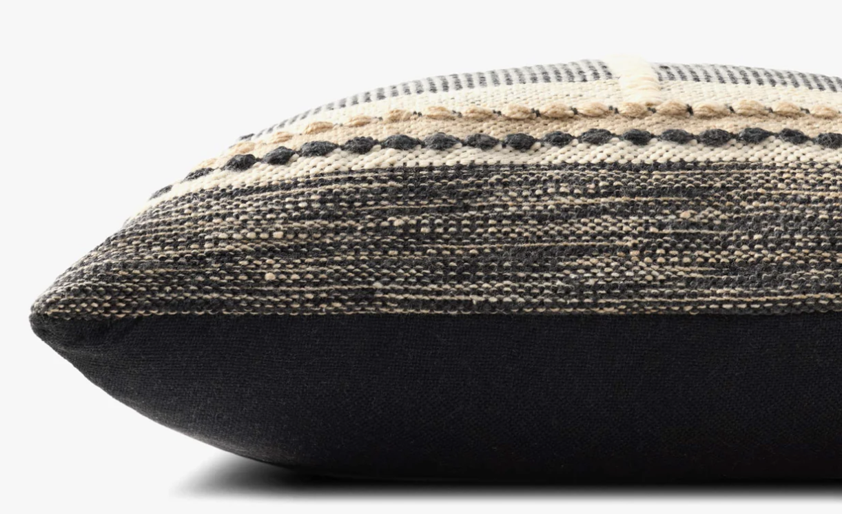 This 22 x 22 inch pillow features a luxurious down filling in a striking black and ivory color combination, adding both comfort and style to your space.