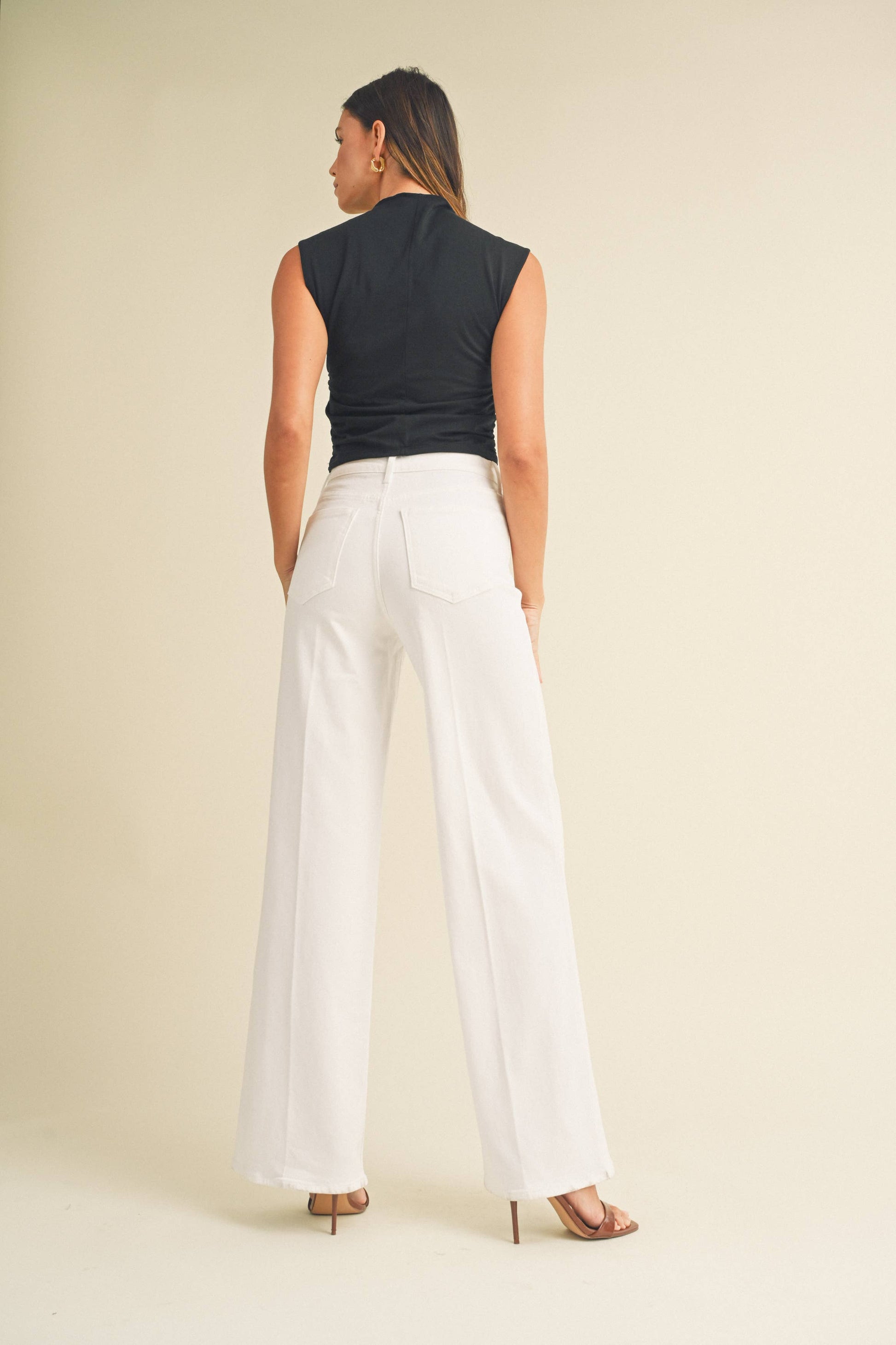 With a high-rise waist and fluid wide-leg silhouette, The Léa Denim brings crisp structure to a soft, modern look. Crafted in bright white denim for a fresh take on everyday sophistication, she pairs just as effortlessly with heels and silk as she does with sneakers and cotton. Timeless, clean, and confidently feminine.