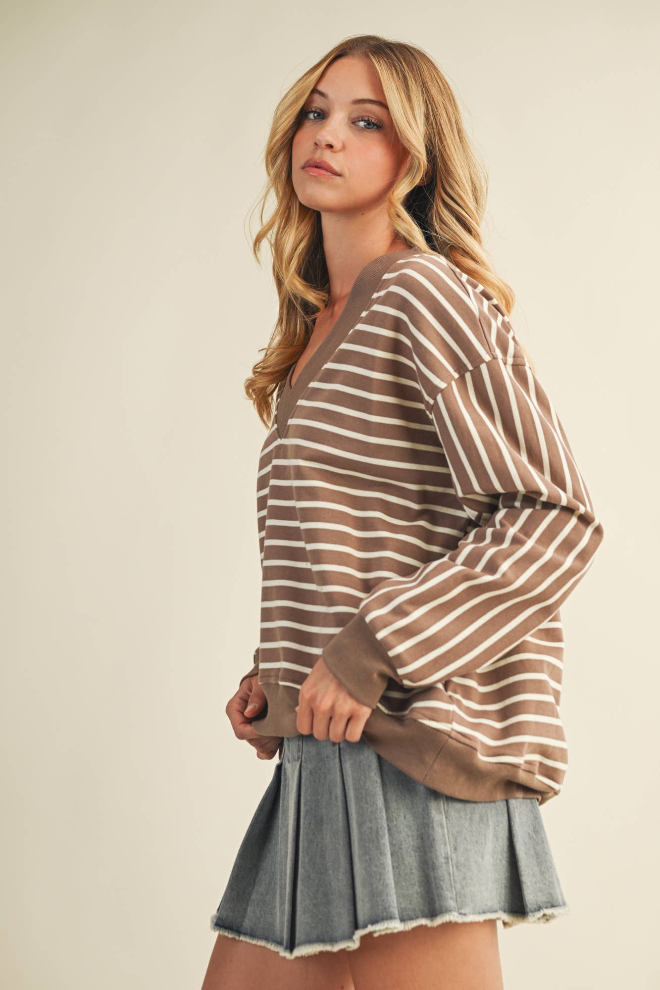 The Emma Top combines a relaxed drop shoulder silhouette with a chic V-neckline, crafted in a soft knit fabric. Perfect for fall, it offers cozy comfort without sacrificing style, making it an elegant choice for both casual and refined looks.