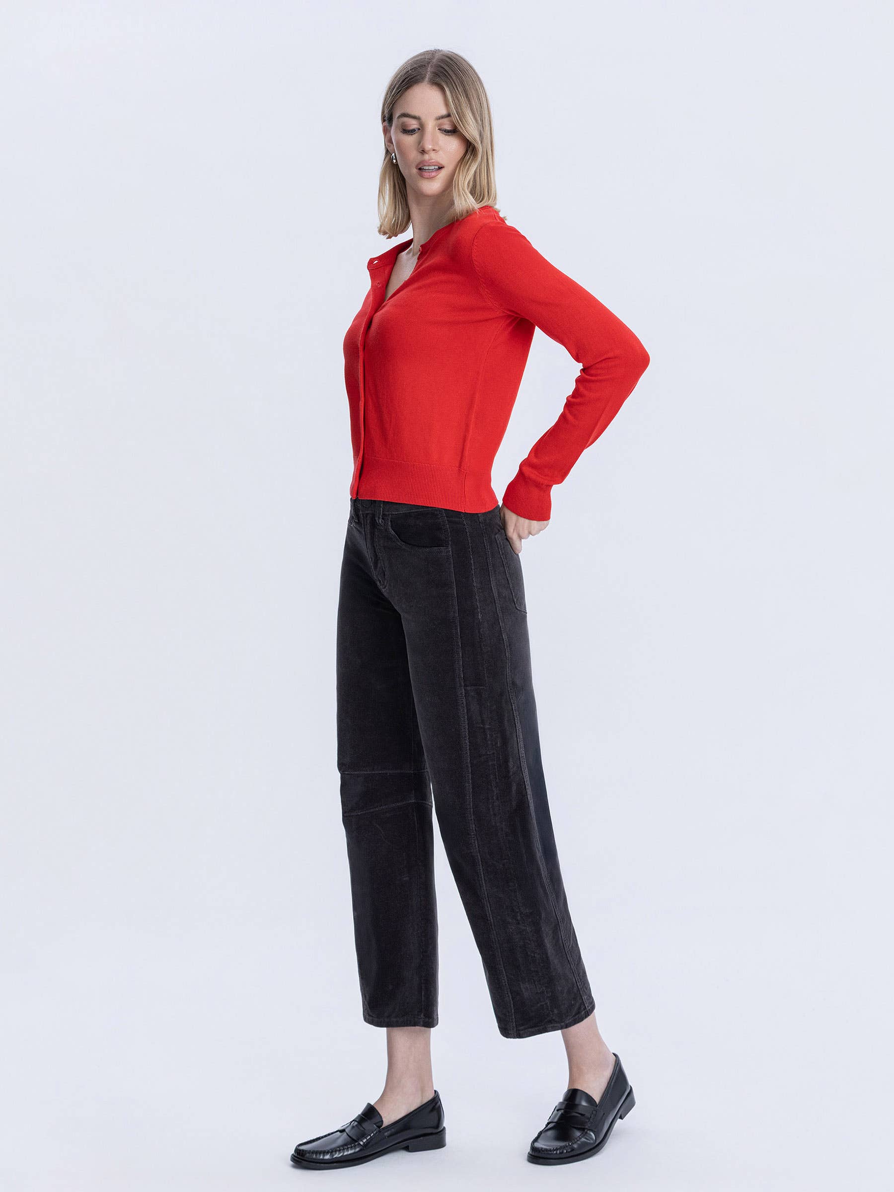 The Gigi Barrel combines timeless elegance with everyday comfort. Crafted in soft corduroy, this high-rise silhouette flatters the figure while the barrel leg creates a chic, modern profile. The refined cut delivers a feminine aesthetic that transitions effortlessly from day to evening, making it a versatile essential for the discerning wardrobe.