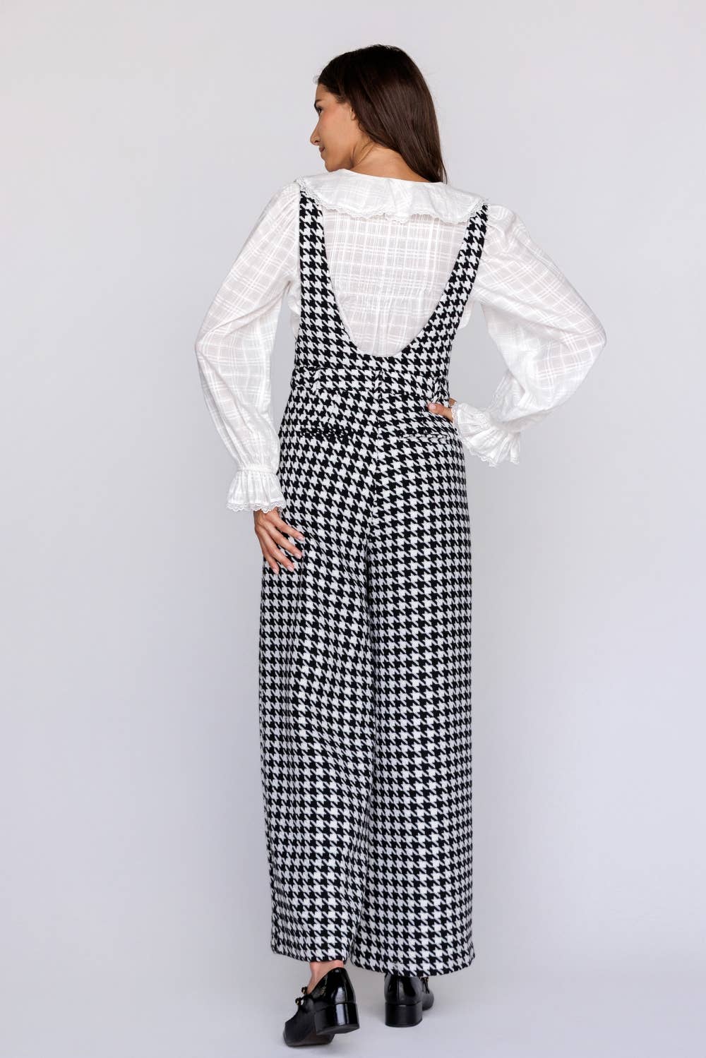 The Elizabeth Jumpsuit effortlessly combines comfort with refined style. This piece features a relaxed, wide-leg silhouette that flatters every frame, paired with a striking deep scoop neckline on both front and back for modern elegance. Antique-look buttons at the center front add vintage charm, while practical side pockets and double-welt back pockets keep you functional without sacrificing sophistication. A timeless design that transitions seamlessly from day to evening.