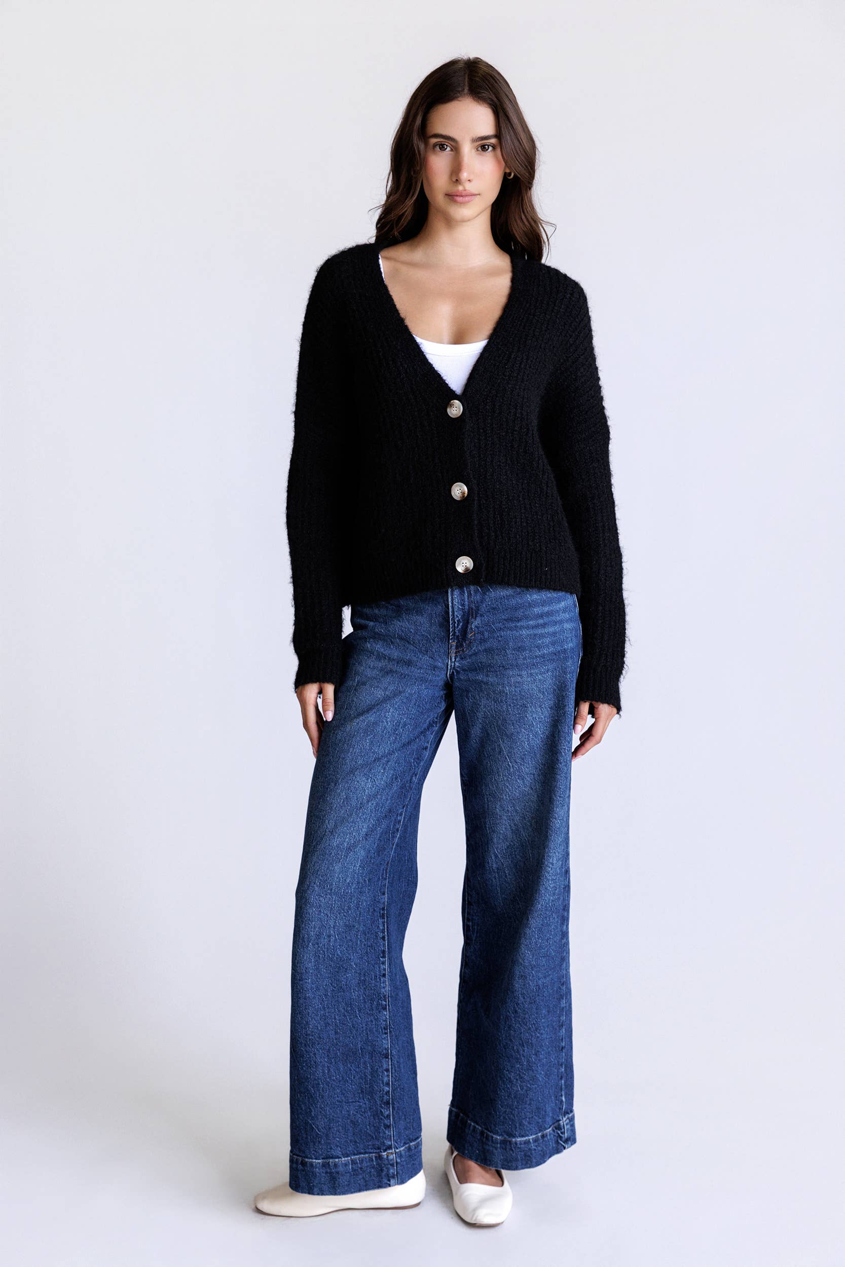 The Sophie Cardigan combines timeless elegance with playful charm. Crafted from a luxuriously ribbed knit, this piece features a refined silhouette that effortlessly transitions from day to evening. Its delicate texture and feminine details create an understated sophistication, while subtle fizzy accents add a touch of whimsy and personality. Perfect for layering or wearing solo, this cardigan brings an elevated, contemporary edge to any wardrobe.
