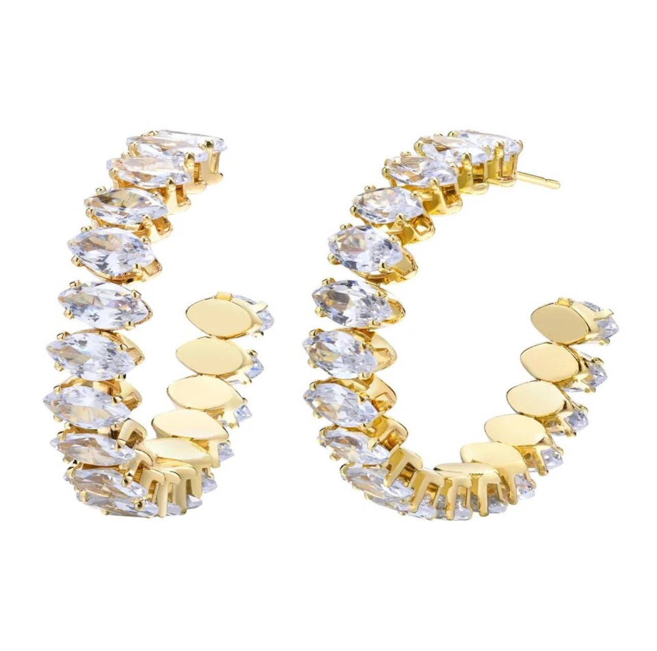Experience the elegance of the Makayla Hoop earrings. Adorned with dazzling CZ stones and a finely diamond-cut finish, these hoops bring a radiant sparkle that enhances any look. Add a sophisticated shimmer to your wardrobe with these stunning, one-of-a-kind earrings.