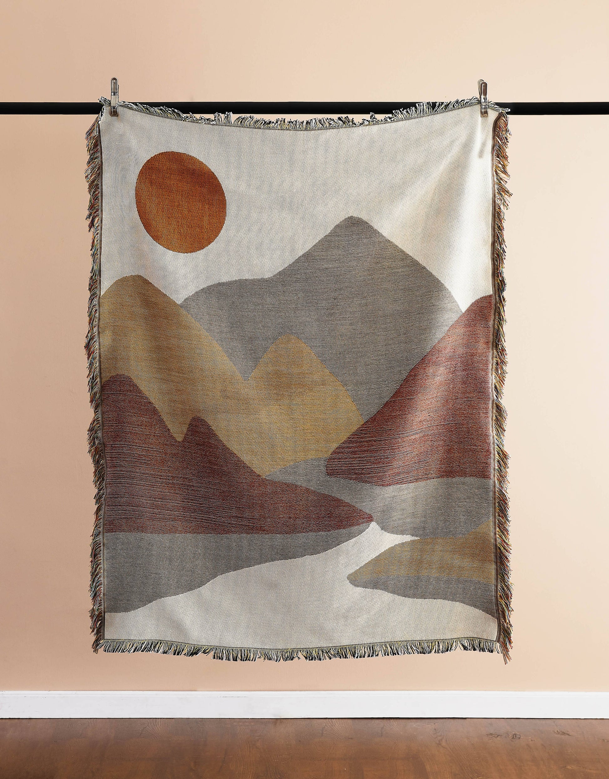 Wrap yourself in the serene beauty of our Sunset Mountain Throw. This exquisite blanket features neutral tones that capture the peaceful transition of daylight to dusk over mountain silhouettes. The soft, cozy fabric creates an instant feeling of comfort, making it perfect for chilly evenings or as a sophisticated accent piece for your living space. Transform any room with this charming throw that effortlessly complements any décor style.
