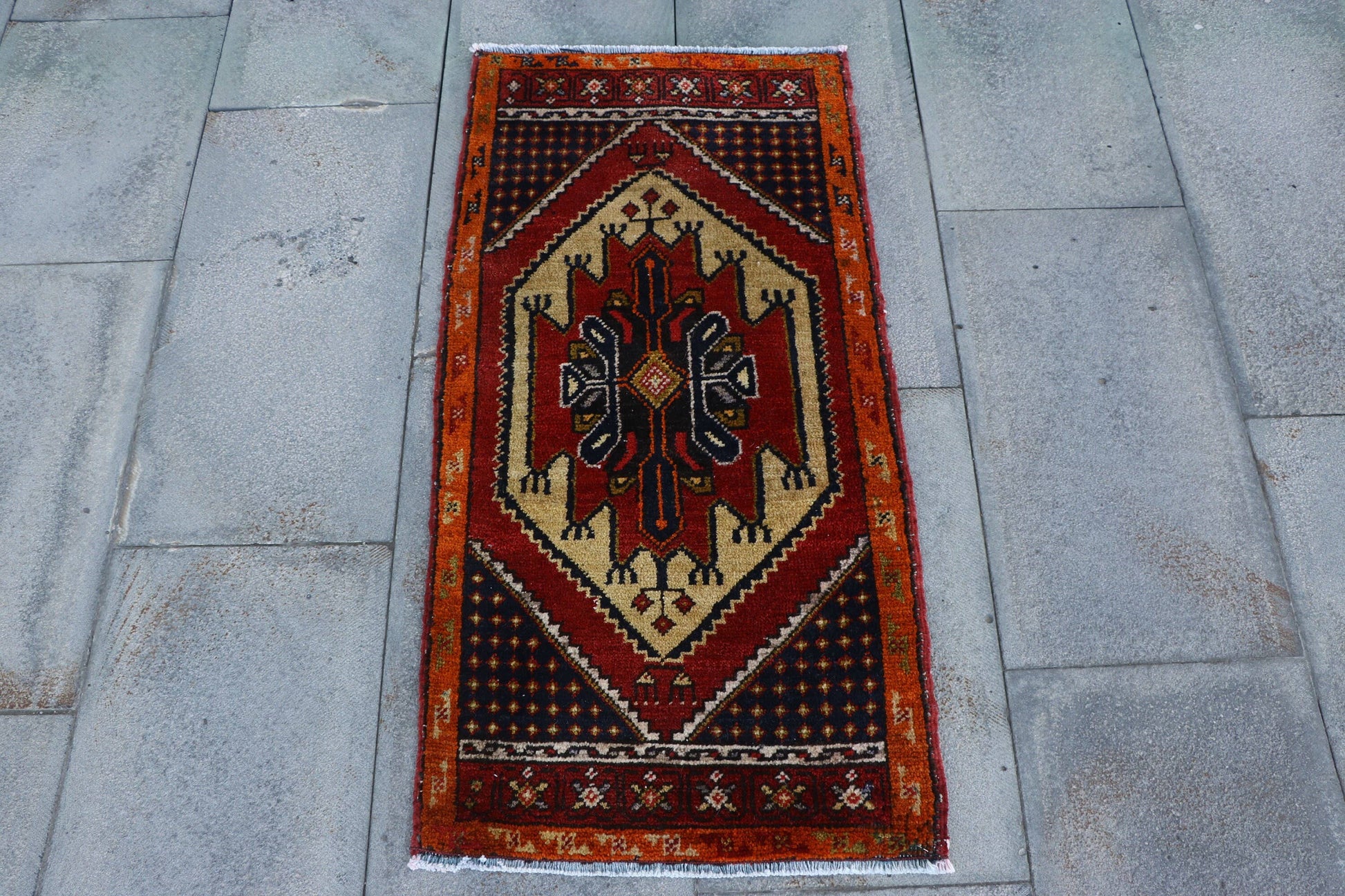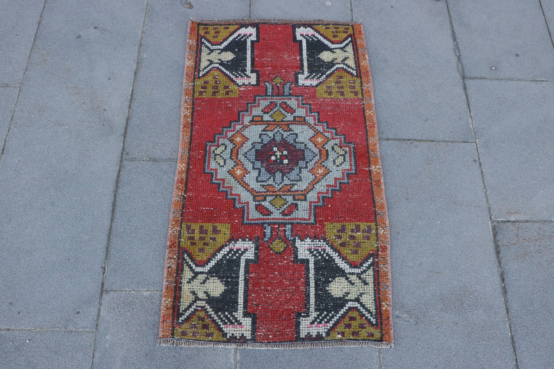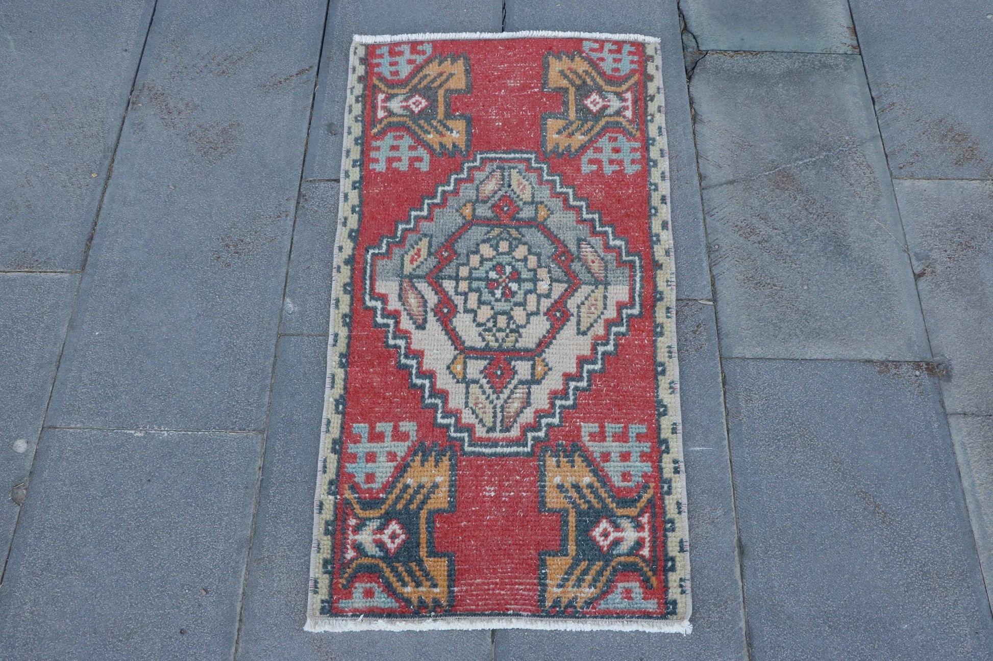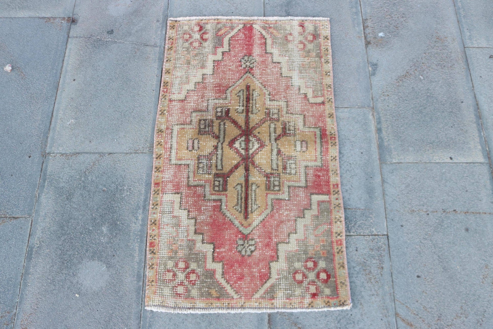 Exquisite Turkish Mini Rug with authentic vintage charm. Each piece showcases distinctive artisanal craftsmanship with varying dimensions and patterns, making it a sophisticated accent for discerning interiors. The delicate Turkish hues evoke timeless elegance, perfect for adding a touch of cultural heritage to your curated space. Perfect for powder rooms or in front of the kitchen sink. Approximately 1.5' x 3.25'